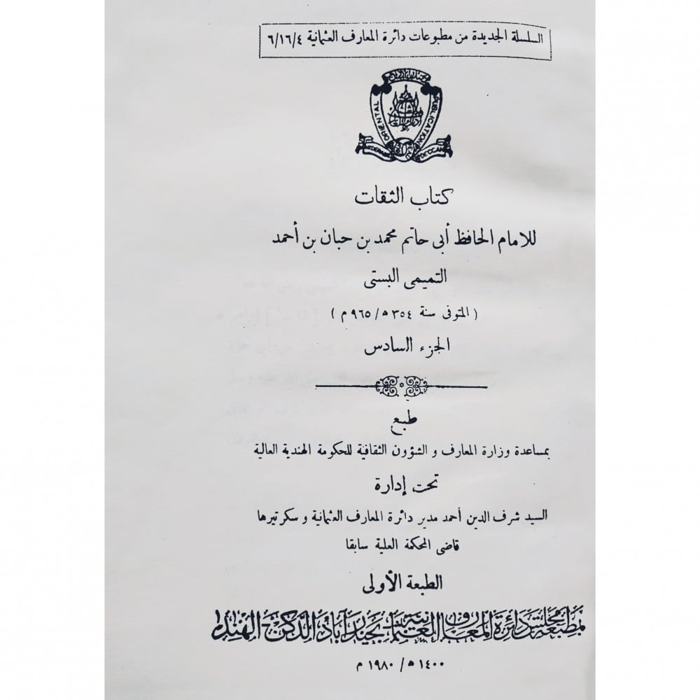 اسم المؤلف: ابو حاتم محمد بن حبان التميمي البستي