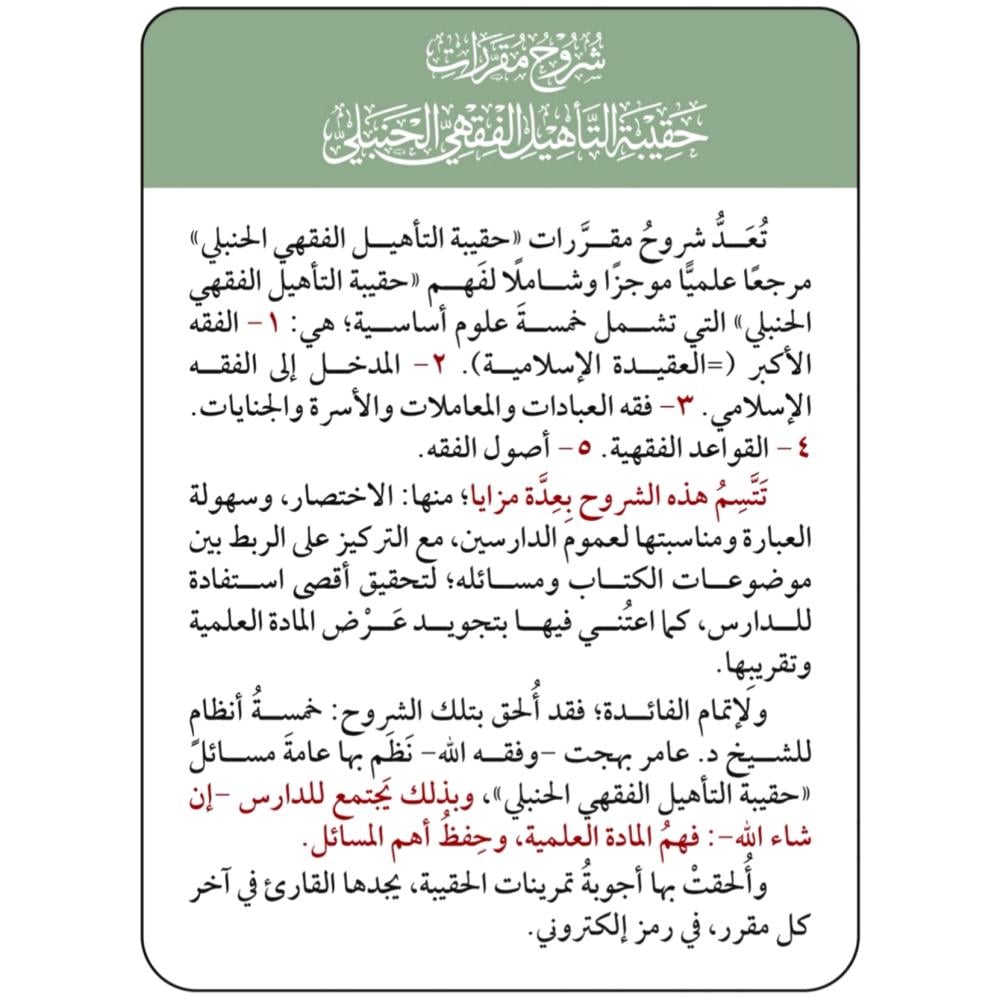 شروح مقررات حقيبة التاهيل الفقهي الحنبلي 2/1